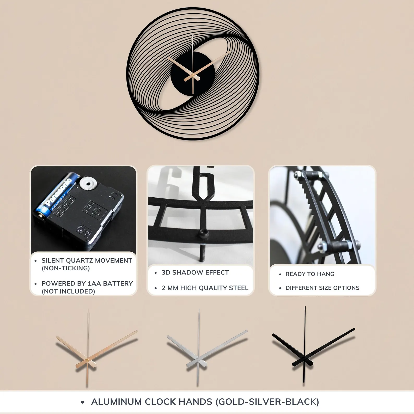 3D SHADOW EFFECT: The elevation screws and hanging bracket create a 3D shadow effect by allowing our product to stand approximately 1 inch (2.54cm) away from the wall. You'll be amazed by the 3D shadow effect for a fascinating and cohesive look where the clock is.